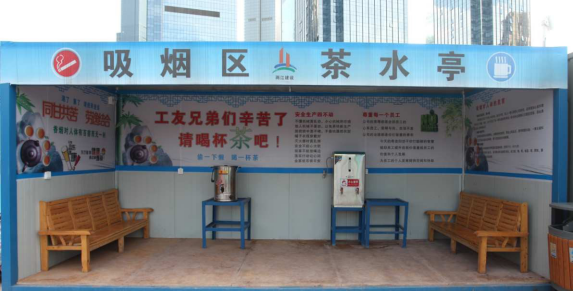 ——營造溫馨。順利推進工程建設,人是關鍵。主動關懷項目人員、打造溫馨的人文環境,兩江建設公司也在積極行動。走進項目部施工區和辦公區,你會發現這里種植了多種綠色植物,整個現場綠意盎然。施工區還設置了吸煙區、休息亭、茶水亭、流動廁所,辦公區設置了羽毛球場、民工夜校、醫務室,整個區域干凈衛生,為項目部人員提供方便、舒適的工作和生活環境。同時,為切實預防新冠疫情,項目部積極開展防疫防控工作,動態采購防疫物資, 對所有人員進行防疫知識培訓,提供采取有效措施嚴防病毒傳播。