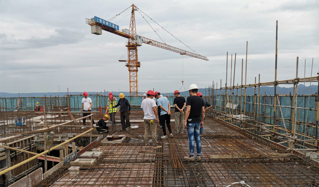 來源:總工辦 林彬 發布日期:2020/9/15 【打印此文】9月11下午,兩江建設公司承建的重慶市溉瀾溪(B02-3/02地塊)工程于順利通過6#樓屋面層(135.08m)鋼筋驗收工作。