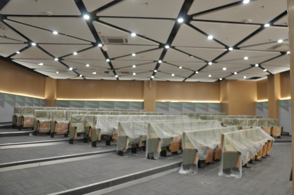 從6月初進場到學院9月初開學,項目工期僅有3個月,而項目需裝修改造的面積近6.5萬平方米,如此緊迫的工期成了橫亙在兩江建設人面前的第一道難關。由于該項目建筑裝飾造型復雜,工序較多,同時由于現(xiàn)場材料、人員眾多,進一步增加了施工現(xiàn)場的管理及實施難度。但作為兩江新區(qū)建筑領域的“先鋒隊”“排頭兵”,兩江建設人敢啃“硬骨頭”的那股倔勁兒反而被激發(fā)出來。
