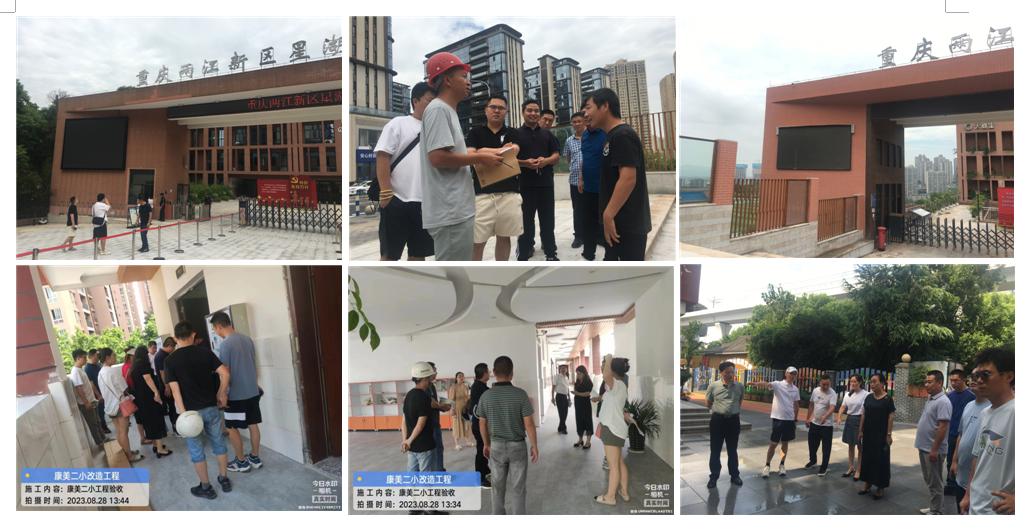 兩江建設公司為確保該項目順利完工,加大力度督促項目部倒排工期、科學部署,合理組織人力物力、調整高溫季節的施工作業時間;并在確保安全質量的前提下,通過現場加班加點和各工序平行、交叉、搭接等施工方式,實現該工程快速高效施工作業。經過近40天的全力奮戰,兩江新區教育系統提升改造工程各施工點保質保量地完成了合同工作內容,部分學校已陸續完成了項目工程的竣工預驗收工作,保證了各學校新學期如期開學的目標。同時,工程質量受到了學校建設、代建、監理、跟審各方的一致好評。